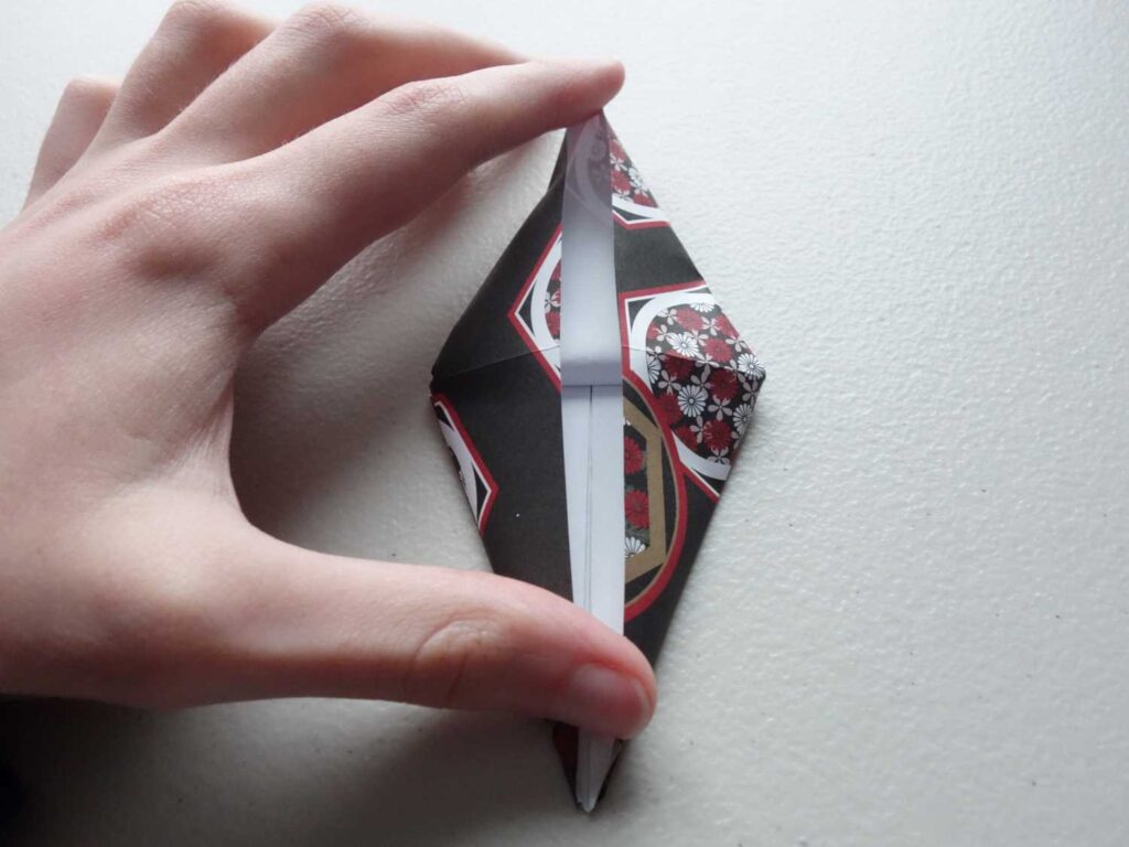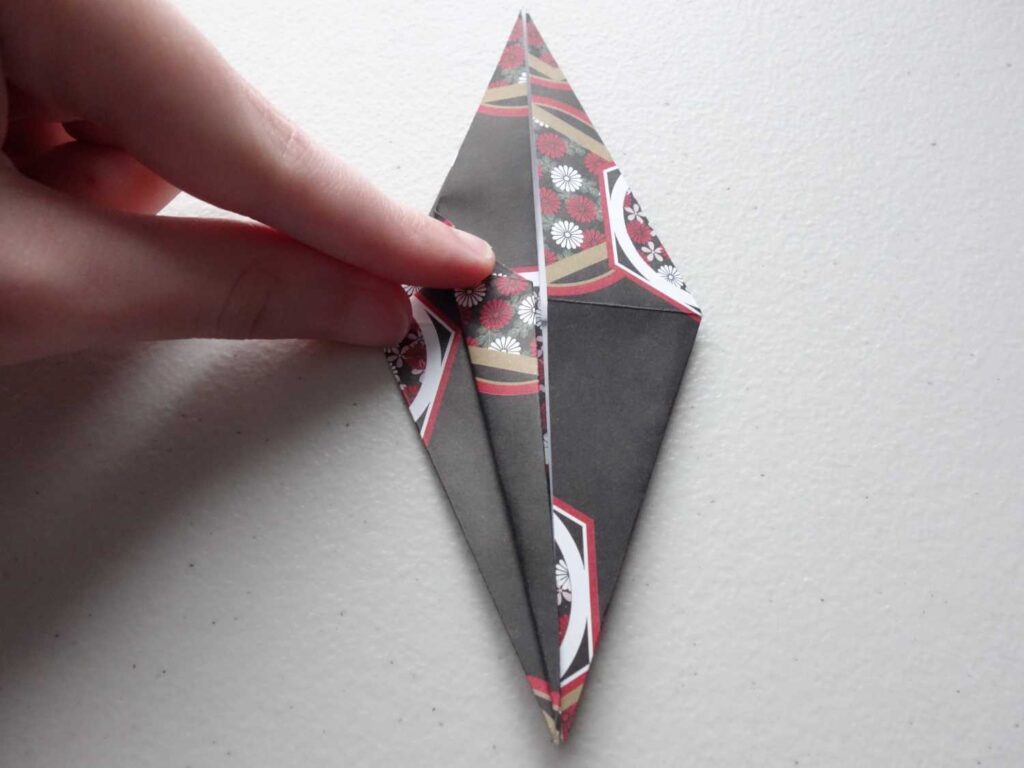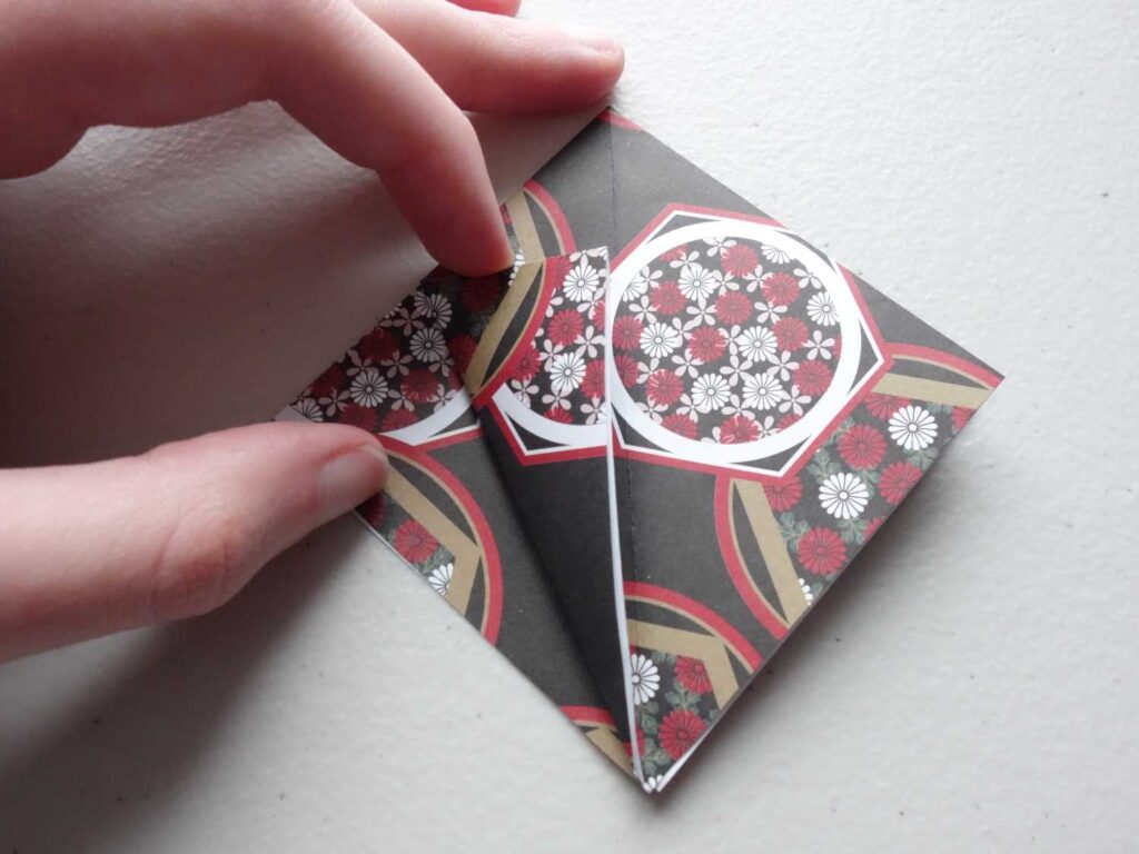 Take the left half of the folded triangle and open it out (the pocket)