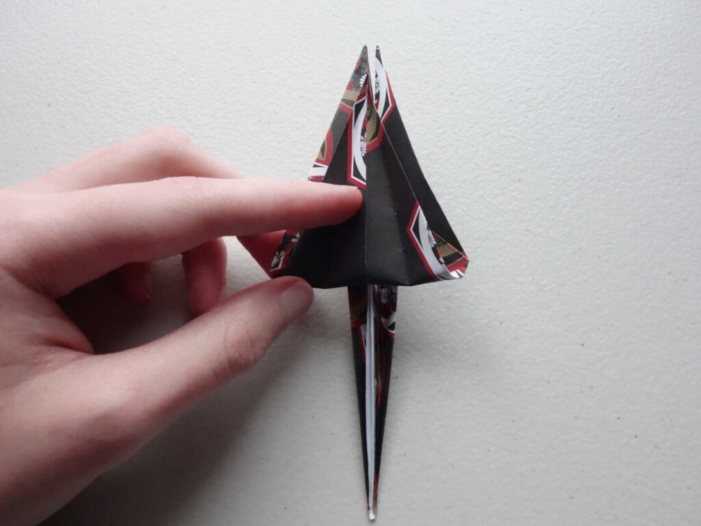 The triangle fold uses very similar techniques to the Square fold (pocket version). It forms a different style base required by other models.